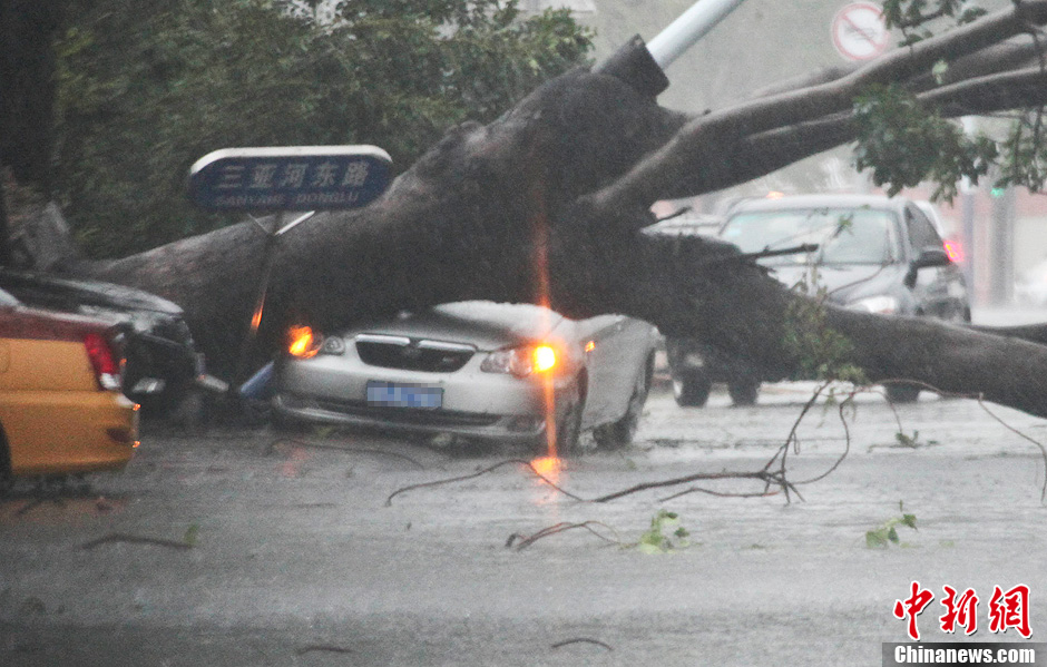强台风“海燕”严重影响三亚 大树被风刮倒