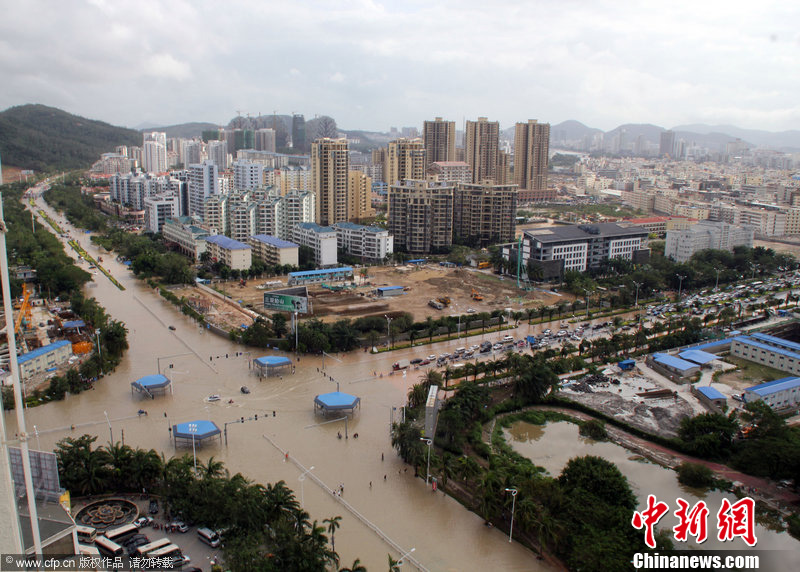 台风“海燕”袭海南 俯瞰三亚市区积水严重