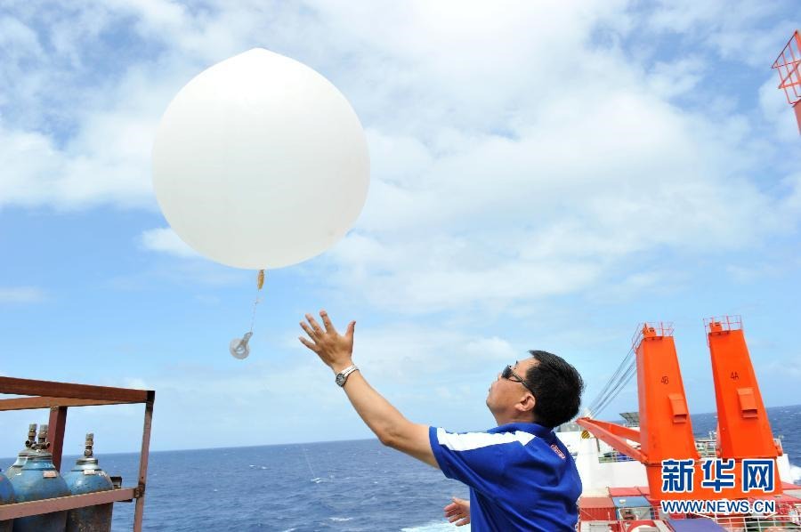 11月11日,中国第30次南极科学考察队大洋考察队队长矫玉田释放探空气球。当日,中国第30次南极科学考察队大洋考察队在“雪龙”号上释放探空气球,以探测大气剖面的温度、湿度、气压等要素,这项科学研究将在“雪龙”号航行过程中连续进行。来自中国海洋大学海洋环境学院的高级工程师矫玉田今年53岁,参加过十次南极科学考察、五次北极科学考察。新华社记者 张建松 摄
