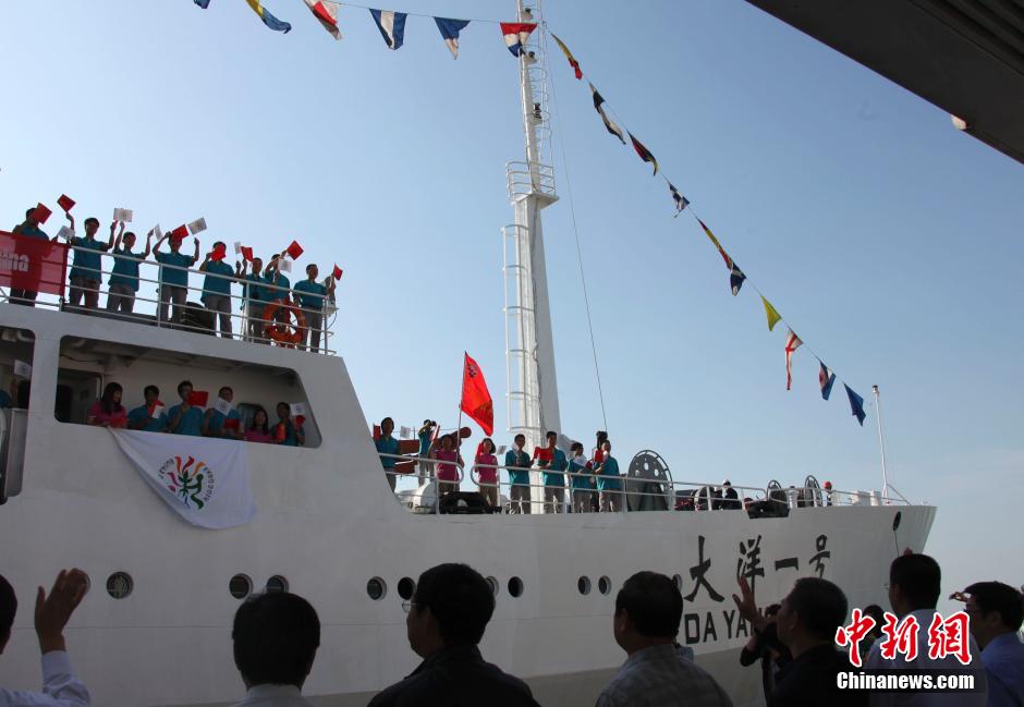 12月2日,执行中国大洋科考30航次任务的“大洋一号”船从海南三亚起航。本航次主要目标是履行“西南印度洋多金属硫化物勘探合同”,对合同区多金属硫化物资源进行勘探,兼顾环境、生物多样性等调查。本航次计划时间180天,航程约1.9万海里,预计2014年5月30日返回青岛,期间将3次停靠毛里求斯的路易港。中新社发 尹海明 摄