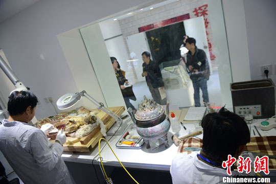 12月2日,全国首家虚拟考古体验馆在成都开始试运行。图为市民现场体验“钻木取火”。张浪 摄
