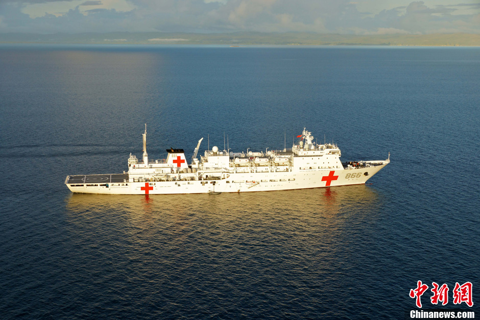 在完成赴菲律宾台风重灾区人道主义医疗救助任务后,中国海军和平方舟医院船10日从菲律宾莱特湾起锚回国。这是中国首次派出舰艇赴海外灾区执行人道主义医疗救助。在为期16天的医疗救助任务中,和平方舟医院船共接诊伤病员2208人,住院113人,手术44例,辅助检查1482人次,开展流行病学调查7000余人,向世界卫生组织提交疾病日报告12份,检测了21个灾民点的25处水源水质,消毒杀虫51790平方米,并向菲方捐赠了部分医疗卫生物资。王曦 摄