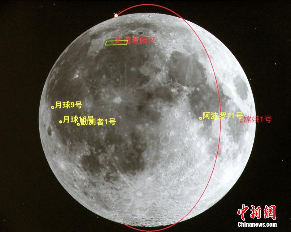 12月10日21时20分,嫦娥三号在环月轨道成功实施变轨控制,顺利进入预定的月面着陆准备轨道。图为嫦娥三号进入预定月面着陆准备轨道示意图。中新社发 张骁祺 摄