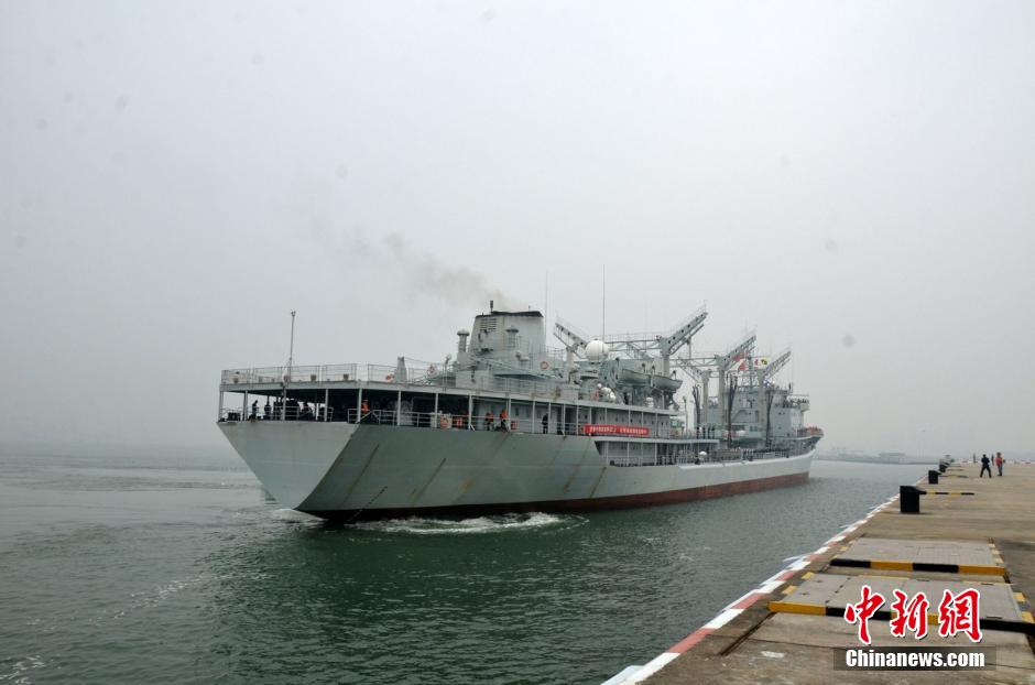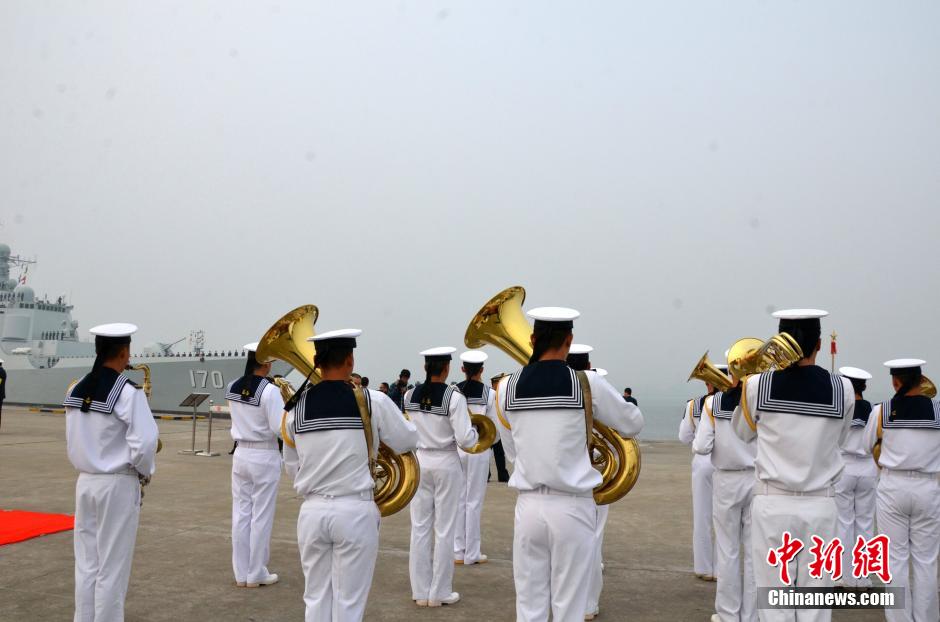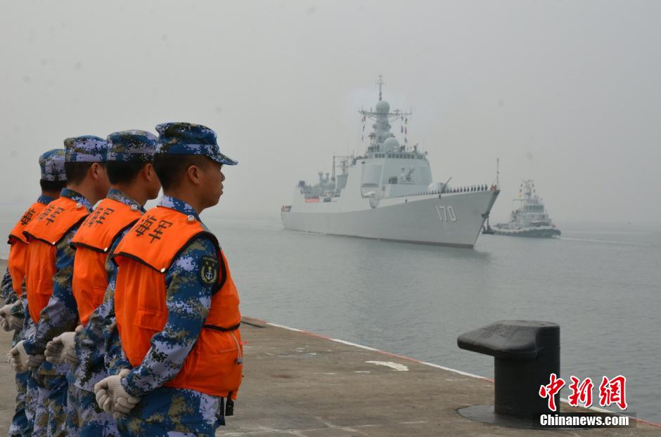 12月11日,广东湛江某军港码头人潮涌动、军乐悠扬。由导弹驱逐舰兰州舰(170舰)、导弹护卫舰柳州舰(573舰)和综合补给舰鄱阳湖舰组成的中国海军舰艇编队,圆满完成出访南美三国任务缓缓靠上码头。自今年9月3日从三亚某军港启航以来,出访编队历时99天,航程近3万海里,先后对智利、巴西、阿根廷三国进行了友好访问。中新社发 高毅 摄