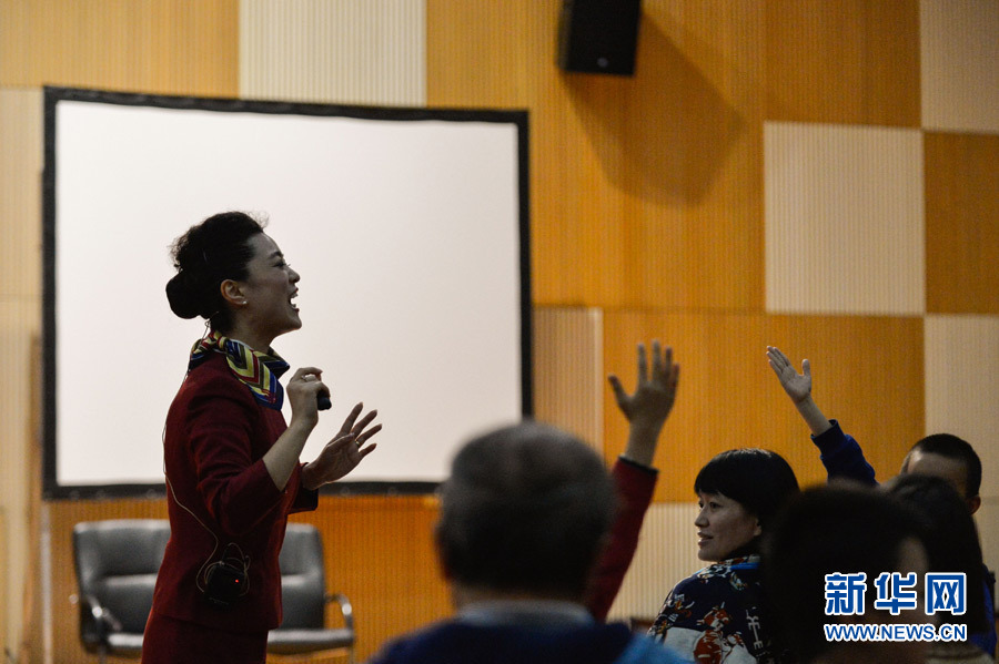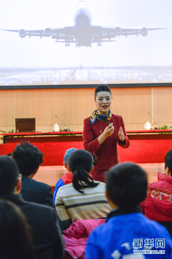 12月1日,国航乘务长赵姝妹在活动上和孩子们互动。当日,“放飞梦想——波音航空科普教育大讲堂·国航专场”活动在北京中国科技馆举行。来自中国国际航空公司的机长和乘务长教员为参加活动的学生们上了一堂生动的航空科普课,让孩子们了解到了不少航空飞行知识以及乘机安全常识。新华社记者 覃海石 摄