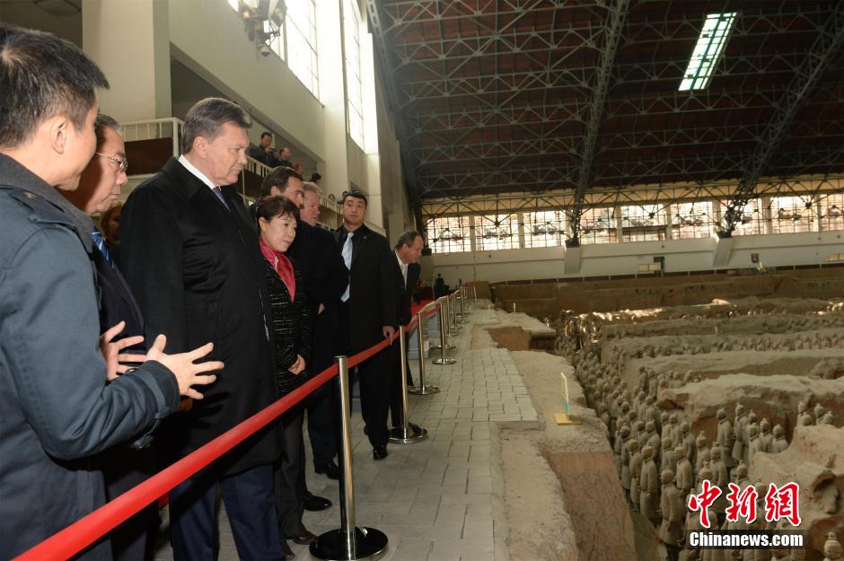 马俑应中国国家主席习近平邀请,乌克兰总统维克托·亚努科维奇于12月3日晚抵达西安,开始对中国进行国事访问。4日上午,在西安参观秦始皇兵马俑。张天柱 摄