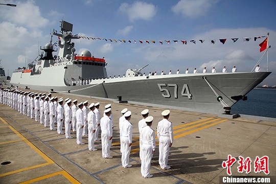 图为三亚舰入列仪式现场。中新社发 于林 摄