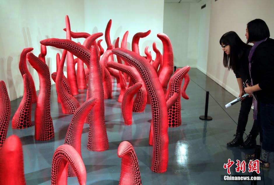 12月14日,享誉世界的日本艺术家草间弥生——“我的一个梦”亚洲巡展,在上海当代艺术馆呈现。中新社发 潘索菲 摄
