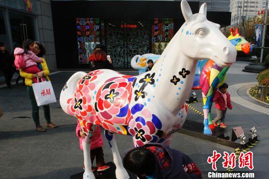 12月14日,上海中信泰富广场携手亚洲青年创作平台推出马年艺术季活动,一组“幸福马上有”的马年景观雕塑吸引了众多路人的眼球。