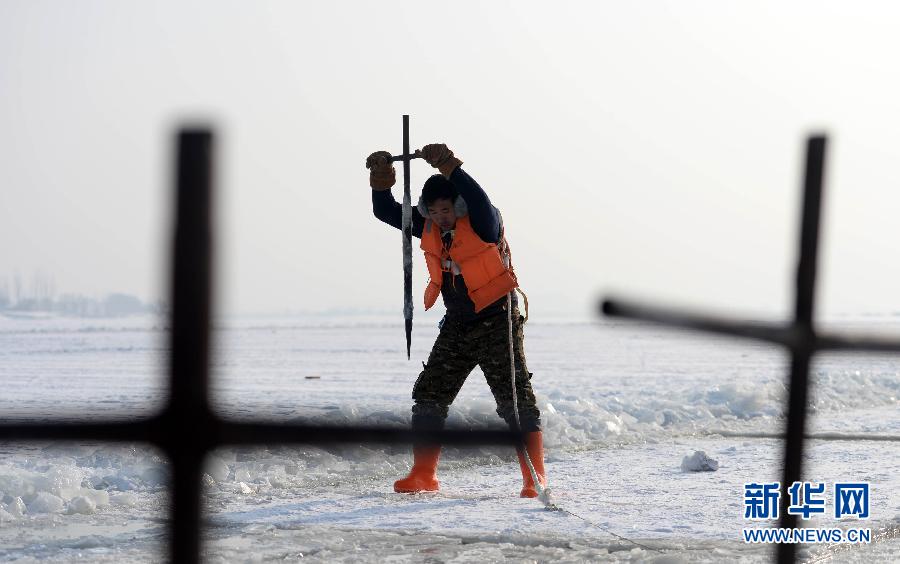 “一、二,起!”冰封的松花江,一声声粗犷的起冰号子在江面上此起彼伏。在冬季旅游火爆的哈尔滨,每年一度的采冰造景是件大事,数以百计的采冰队伍在给当地冰雪经济出力的同时,也为自己找到了一条致富路。 12月的哈尔滨寒风刺骨,记者在采冰现场看到,半米多厚的冰面被电锯初步切割成1.6米长、0.8米宽的长方体,每个冰块重量都在1000斤以上。采冰人先用木槌和钎子把冰块扎离,再合力用铁钩把冰块拖上来,然后用叉车运走。 “采冰看着简单,却是个技术和力气都要过硬的活儿。”一位采冰人告诉记者,“以前农村‘3个月种田,9个月干闲’。这些年生活方式慢慢变了,越来越多的人愿意出来,打工或采冰什么的贴补家用,日子也不单调了。” 多年来,采冰供冰已成为村民冬闲时的一笔重要收入。“我们全家种地一年挣两万元左右,如果一个采冰季能干满30天,每人每天200多块,一个月下来就是7000元左右,这个年过得就锦上添花了。”一位采冰人边算边说。为保证安全,采冰队还给采冰人买了保险。采冰人每天在冰面工作都得10个小时以上,摔跟头、掉进冰水甚至受伤都难以避免,有了保险就为大家添了一份保障。新华社记者 王凯摄