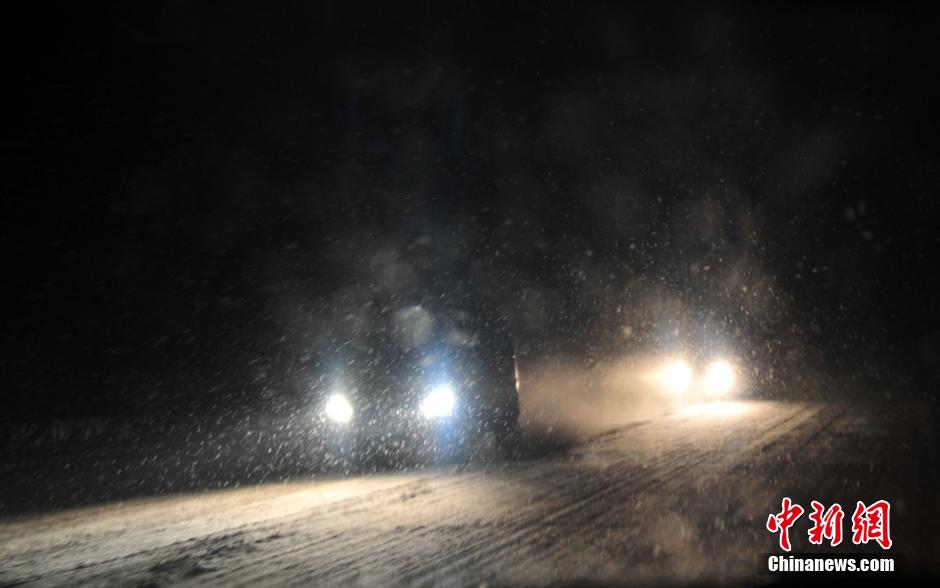 12月25日,辽宁省本溪市在夜间开始降雪,降雪导致辽宁省内部分高速公路封闭。中新社发 于海洋 摄