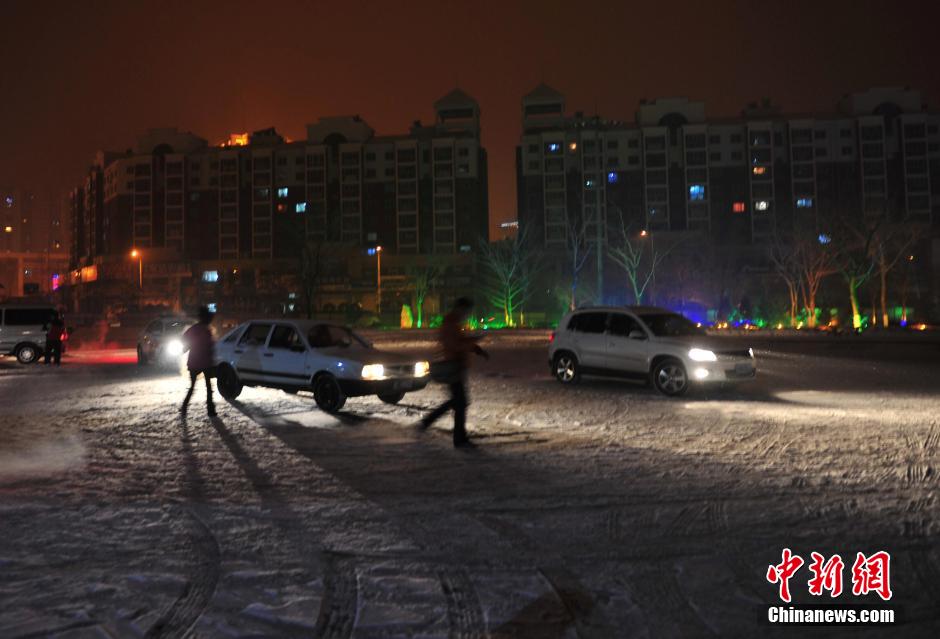 12月25日,辽宁省本溪市在夜间开始降雪,降雪导致辽宁省内部分高速公路封闭。中新社发 于海洋 摄
