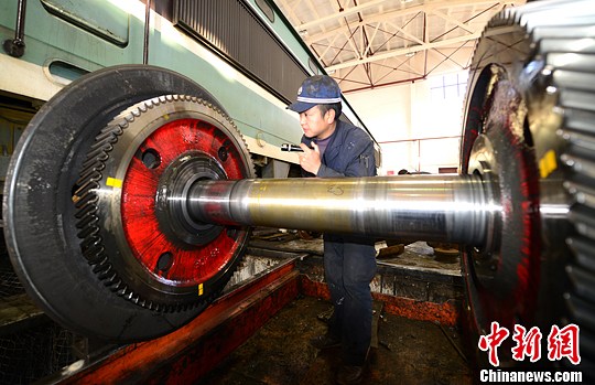 图为昆铁职工检查机车车轮。中新社发 汪建云 摄