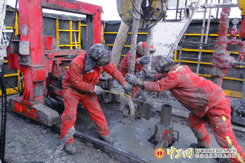 2014年1月12日,黑龙江大庆市正直隆冬天气,当天的气温已经下降到零下28度,冷风夹着雪花打在脸上像刀子割一样疼痛。在这样的极端天气里,大庆1202钻井队的队员们依然坚守在生产一线,用他们的实际行动生动地诠释了“有第一就争 见红旗就抗”的尖刀精神。(吕毅)