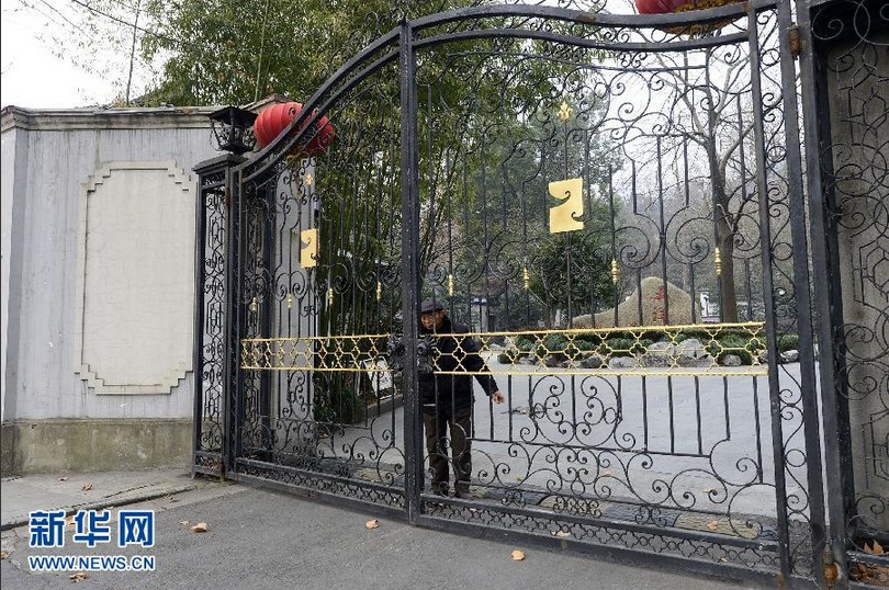 1月18日,杭州西湖北山街45号菩提精舍会所的看门老人在锁闭大门。从杭州市政府获悉,杭州继1月16日关停了西湖会、莲庄、听涛居、抱青会馆、柳莺玖号等5家会所后,17日又关停位于西湖景区公园内的10家会所,分别是吴山会馆、井外天、新荣记、海陆会、嘉纳餐饮、静逸别墅、菩提精舍、涌金楼、御尊园、学士居。其余景区公园内所有名人故居和文化遗址内的高档经营场所,也将在近几天相继关停。新华社发