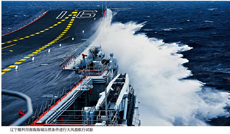 辽宁舰自2013年11月26日从青岛起航,在海军导弹驱逐舰沈阳舰、石家庄舰和导弹护卫舰烟台舰、潍坊舰的伴随下,首次赴南海海域试验训练以来,试验任务指挥部严密组织,科学指挥,全体参试官兵攻坚克难,连续作战,相关试验训练内容均按计划顺利推进,先后完成了母舰在高海况条件下的舰艇运动参数、舰体结构应力、舰载机系留载荷测量等总体适航性试验,深水条件下航速测量,以及近似实战条件下航母作战系统感知能力,指挥能力,目标指示能力,综合通信、导航、气象保障能力,空域管理能力等100余项试验和训练课目,作战系统、动力系统及舰艇适航性能等各项战技术指标得到进一步验证。期间,首次组织了作战系统综合研试,首次组织了以辽宁舰为核心的编队航行训练,达到了预期目的。海军相关部队出动了多个型号的飞机、水面舰艇和潜艇,有效配合了试验,同时带动了部队实战化训练。