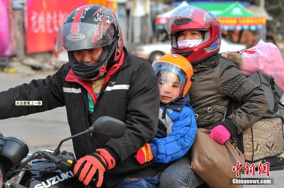 1月16日至24日,从广东驾驶摩托车途经广西梧州返乡的大军已突破十万,随着春节临近,每天过境的摩托车数量还将增加。梧州交警部门在部分县市交界处设立春运服务站,为返乡民众提供帮助。图为进入梧州境内的返乡民众。中新社发 洪坚鹏 摄