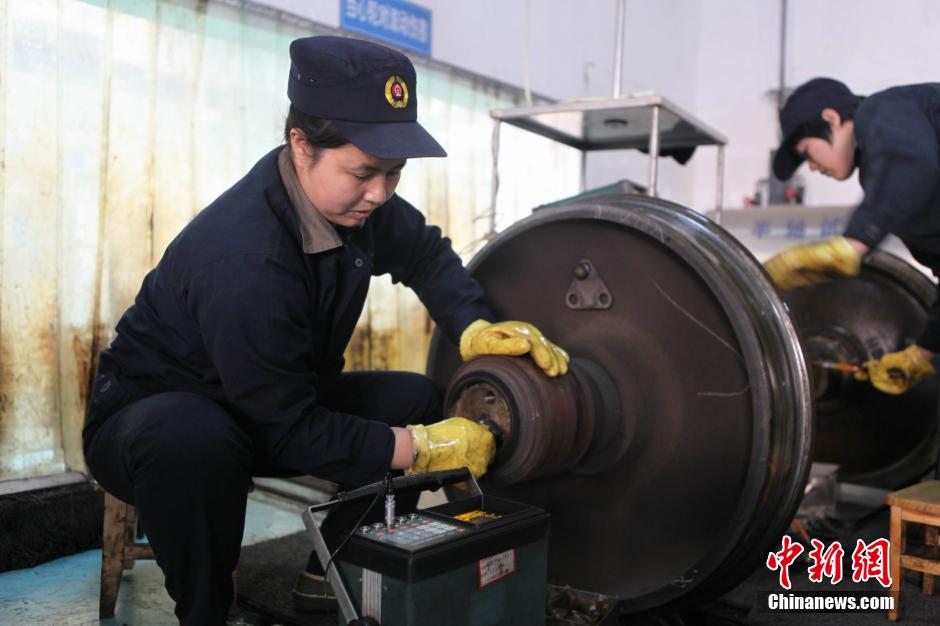 铁路工人加强列车检修 确保年货物资运输安全