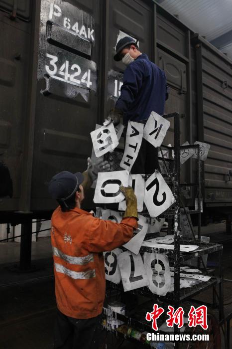 1月26日是2014年春运第11天,随着春节的日益临近,南昌铁路局南昌南车辆段职工正加大货物车辆检修力度,加快货车周转,确保年货物资运输安全畅通、准时高效,防止因车辆故障影响年货按时到达。图为南昌南车辆段职工正在对修竣的车辆涂打检修标记。张华 摄