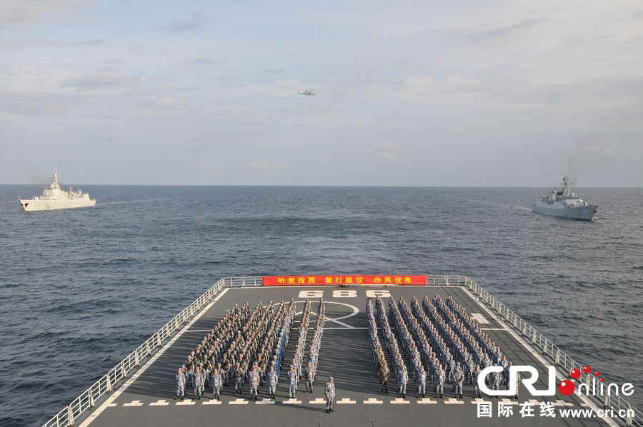 1月26日,南海舰队远海训练编队在曾母暗沙海域举行宣誓仪式。王婷 摄 图片来源:国际在线