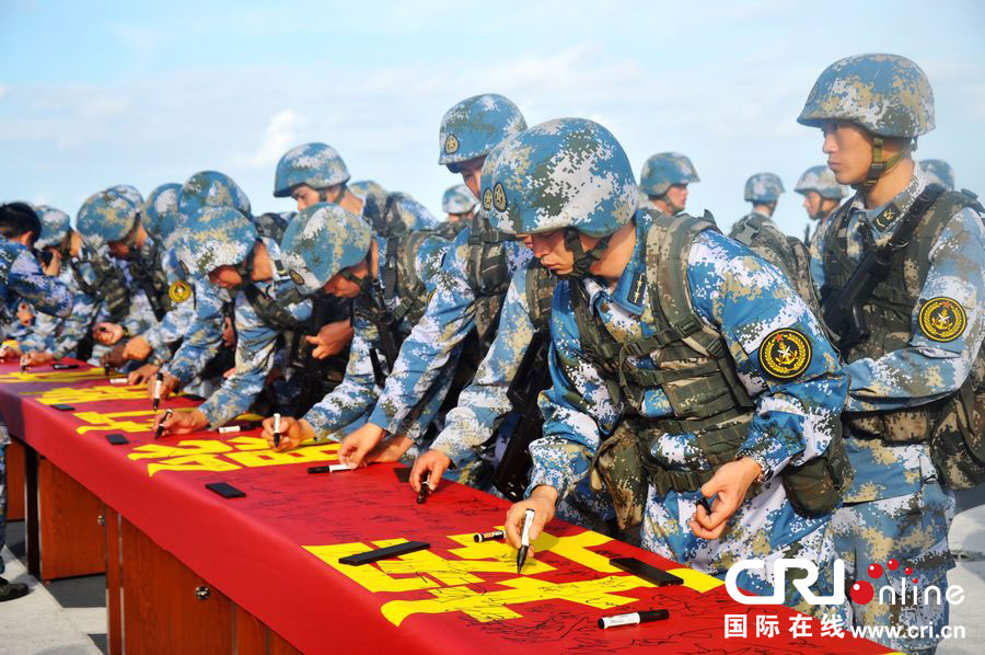 1月26日,南海舰队远海训练编队在曾母暗沙海域举行宣誓仪式。王婷 摄 图片来源:国际在线