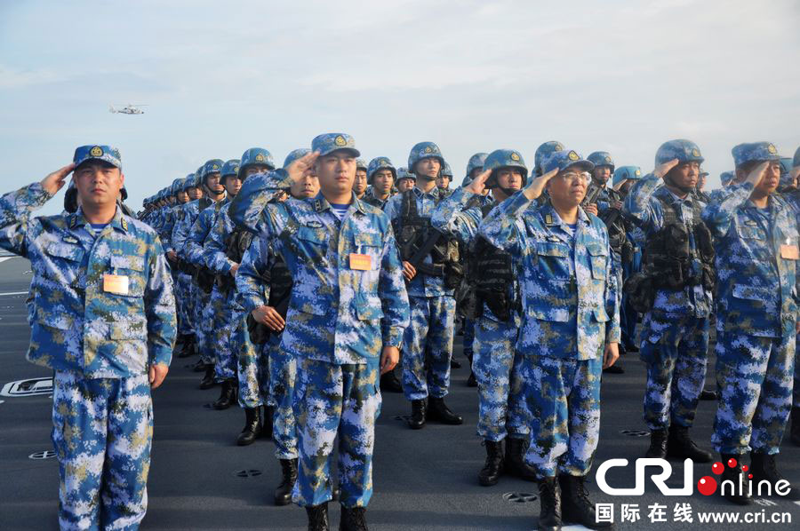 1月26日,南海舰队远海训练编队在曾母暗沙海域举行宣誓仪式。王婷 摄 图片来源:国际在线