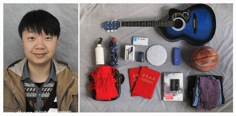 2014年1月24日,湖南株洲,有钱没钱回家过年,再熟悉不过的话在这几天却有种特别的含义。伍鹏,总物品约重:10公斤,在南昌上学的伍鹏,回到老家株洲过年。红色的围巾是女朋友为他编织的,荣誉证书是2013年学校授予他的“优秀学生”称呼,他说这两件物品是他行囊中最宝贵的物品。