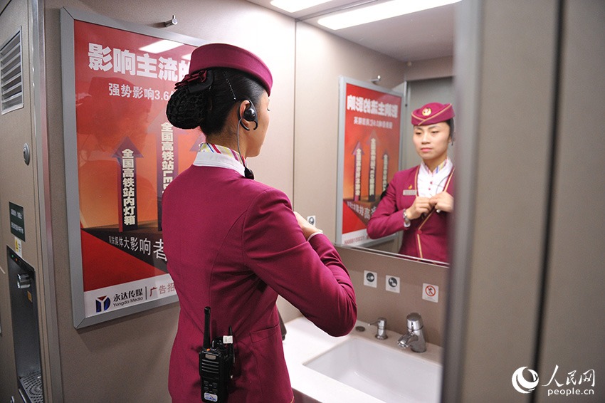 认真记录:6点41分,列车长李娜填写库内清洁验收单,并最后确认签字。(人民网记者 关腾飞 摄)图片来源:人民网