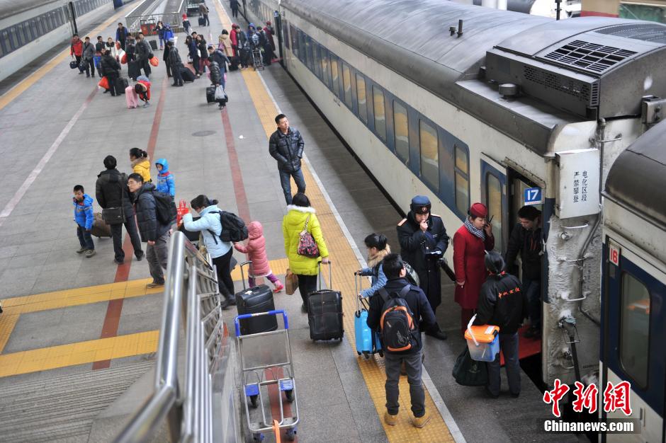 2月6日正月初七,2014全国春运迎来返程客流高峰。当日,北京西站预计到达旅客18.9万人,为了迎接返程高峰,西站将节前盯守的重点部位进站口调整为站台和出站口,在站台组织了10人的乘降小分队。同时,西站地铁站和出租车调度站都加派人手疏导旅客。另外,此前受中东部地区雨雪影响,京沪、京广、郑西高铁部分区段限速运行,致使多趟抵京的高铁列车晚点。图为北京西站出站客流。中新网记者 金硕 摄