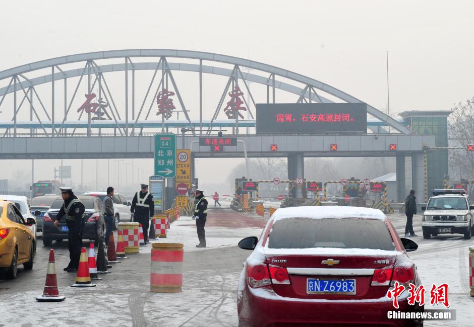 2月6日是正月初七,春节假期的最后一天,依旧处于春运返程高峰期。据中央气象台预报,2月6日至8日,中东部地区有大范围雨雪天气,温度继续下降。受恶劣天气影响,河北部分地区出现道路结冰,造成京港澳、京昆、大广、石黄高速等12条高速公路封闭,给公路交通出行带来不利影响。图为石家庄京港澳裕华高速路口封闭,多辆私家车在上道口等待。中新社发 翟羽佳 摄