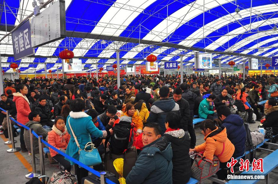 2月6日是农历正月初七,在春节假期即将结束之际,成都铁路进入春节返程客流高峰。图为在成都火车站临时候车室,返程的旅客正在候车。胡志强 摄