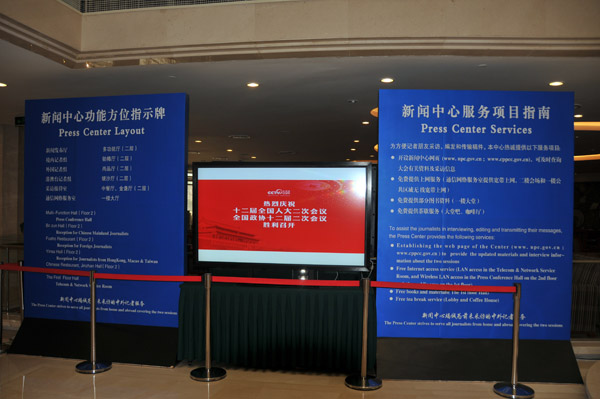 2014年全国“两会”新闻中心指示牌 高国全 摄