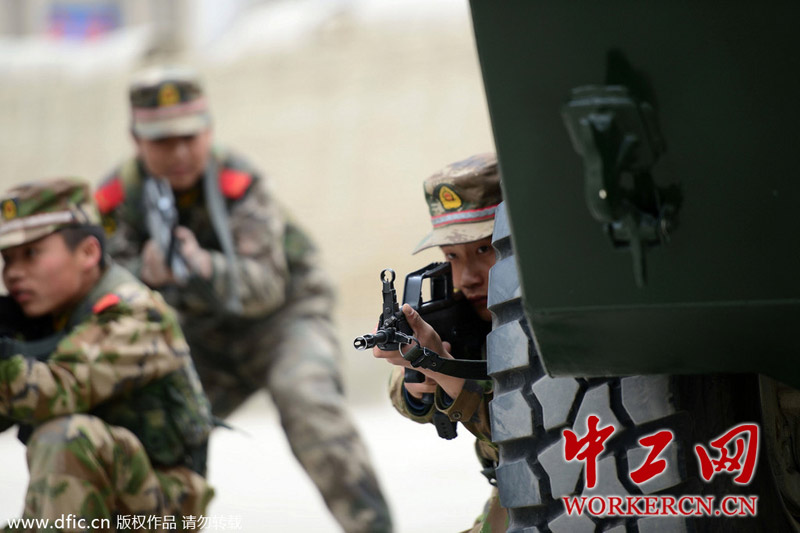 2014年2月27日,武警新疆总队第五支队从难从严励练摔打部队,有效提升了部队遂行多样化任务的能力,为“两会”胜利圆满召开提供坚强的力量支撑。