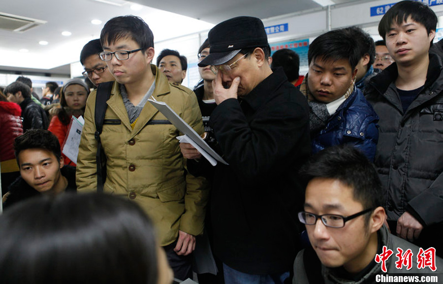 2月28日,湖北省武汉市,武汉洪山体育馆,2014武汉首场上市公司、知名企业高校毕业生供需见面会,不少家长来帮孩子找工作。宋荣成 摄 图片来源:CFP视觉中国