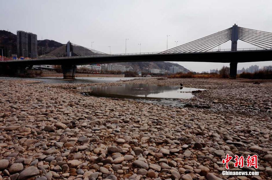 2月28日,兰州市民在裸露的黄河河床上放风筝、散步。近段时间以来,黄河兰州段出现大面积裸露。杨艳敏 摄