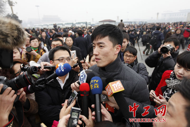 3月3日,中国人民政治协商会议第十二届全国委员会第二次会议在北京人民大会堂开幕。图为全国政协委员刘翔步入会场。 中工网记者 韩靖摄