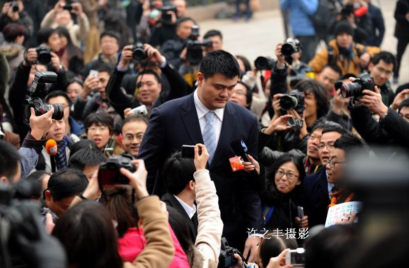 2014年3月3日下午,全国政协十二届二次会议在北京人民大会堂开幕。作为体育界的代表人物,全国政协委员姚明步入会场时遭遇记者“围堵”,姚明结合中国篮球职业化进程中的现实问题,正在探寻一条适合中国篮球切实可行的发展之路,深刻地谈出了目前中国篮球职业化的种种问题。工人日报-中工网记者许之丰摄影报道