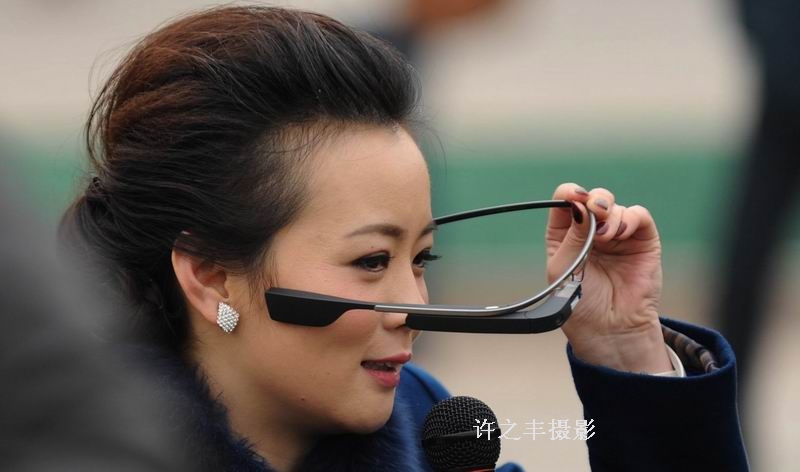 2014年3月3日下午,全国政协十二届二次会议在北京人民大会堂开幕。在人民大会堂广场一位记者佩戴谷歌眼镜采访,据了解此眼镜和智能手机一样的功能,可以通过声音控制拍照。工人日报-中工网记者记者许之丰摄影报道