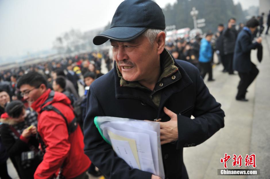 3月3日15时,中国人民政治协商会议第十二届全国委员会第二次会议在人民大会堂开幕。图为赵本山委员“突出重围”步入会场。中新网记者 金硕 摄
