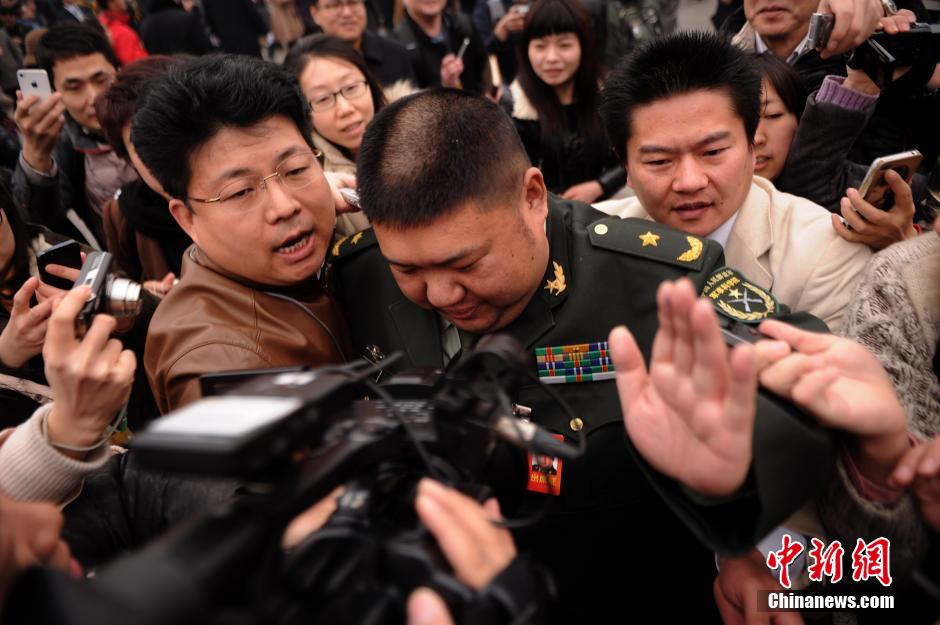 3月3日,全国政协十二届二次会议在北京人民大会堂隆重开幕。众多记者围堵采访全国政协委员毛新宇。中新社发 陈超 摄