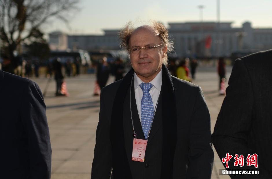 3月5日上午,第十二届全国人民代表大会第二次会议在人民大会堂开幕。希腊使节参会。中新社发 廖攀 摄