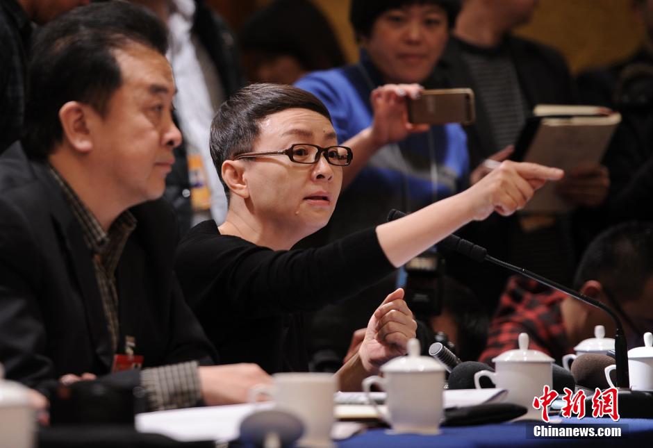 3月5日,宋丹丹参加全国政协十二届二次会议文艺界别委员小组讨论。中新社发 陈超 摄