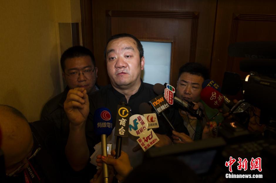 3月9日,一名马航失联航班MH370的乘客家属代表在丽都酒店接受媒体记者采访,回答记者提问。中新社发 崔楠 摄