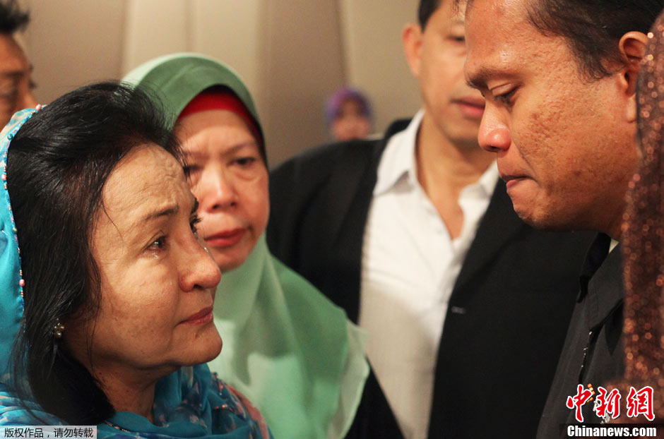 3月9日,马来西亚总理纳吉布的夫人罗斯玛·曼梳(Rosmah Mansor),流泪安慰马航失联MH370航班乘客的家属。