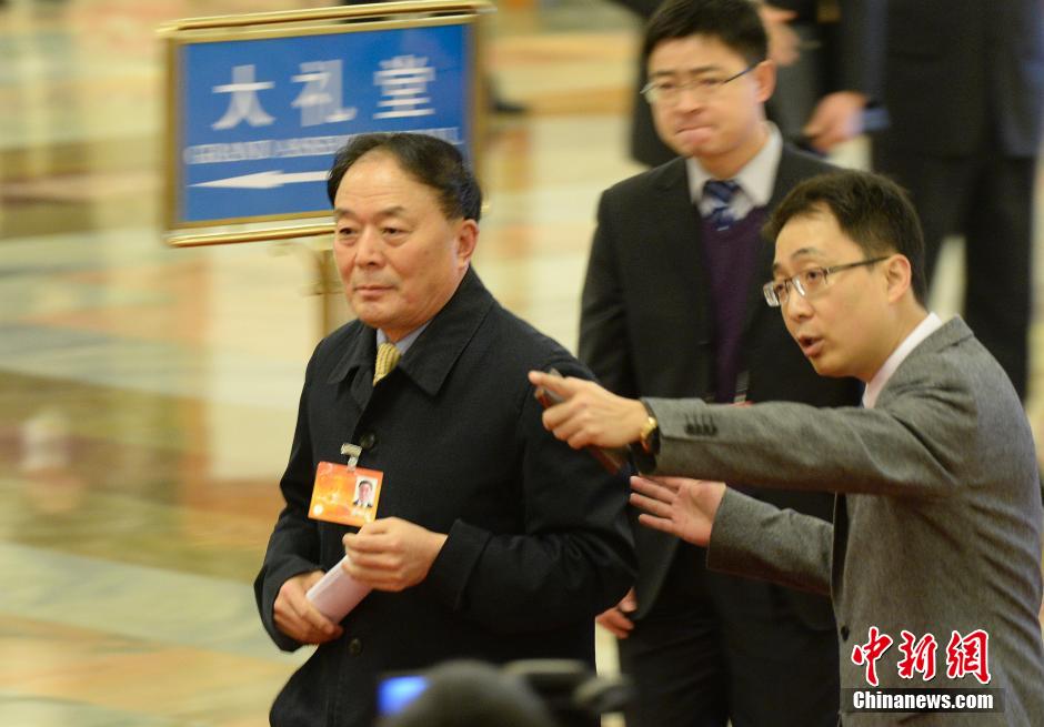 3月10日,中国民航局局长李家祥(左)在十二届全国人大二次会议第三次全体会议开会前步履匆匆地进入人民大会堂。中新社发 侯宇 摄