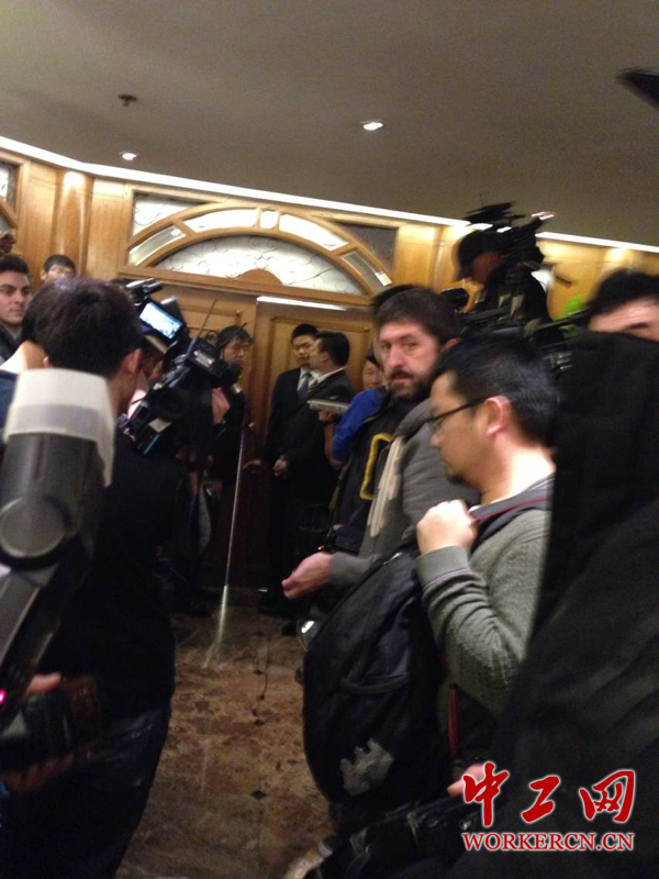 “马航失联”事件发布会现场,北京丽都饭店家属区外守候了数百名世界各地的记者,希望能够在第一时间获得航班消息。全中国人民已经做好了接机准备,等着你们回来!中工网记者 宋晓俐摄
