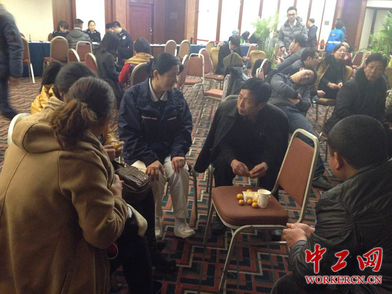 3月10下午16:30分。马航失联事件发生后的第62小时,设在北京丽都饭店的新闻发布会现场和家属联络区里,数百名家属碰就在焦急的等待着消息,为了给家属们提供更好的服务,现场工作细心地人员为家属们提供了水和食物。中工网记者 宋晓俐 摄