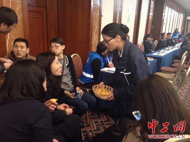 3月10下午16:30分。马航失联事件发生后的第62小时,设在北京丽都饭店的新闻发布会现场和家属联络区里,数百名家属碰就在焦急的等待着消息,为了给家属们提供更好的服务,现场工作细心地人员为家属们提供了水和食物。中工网记者 宋晓俐 摄