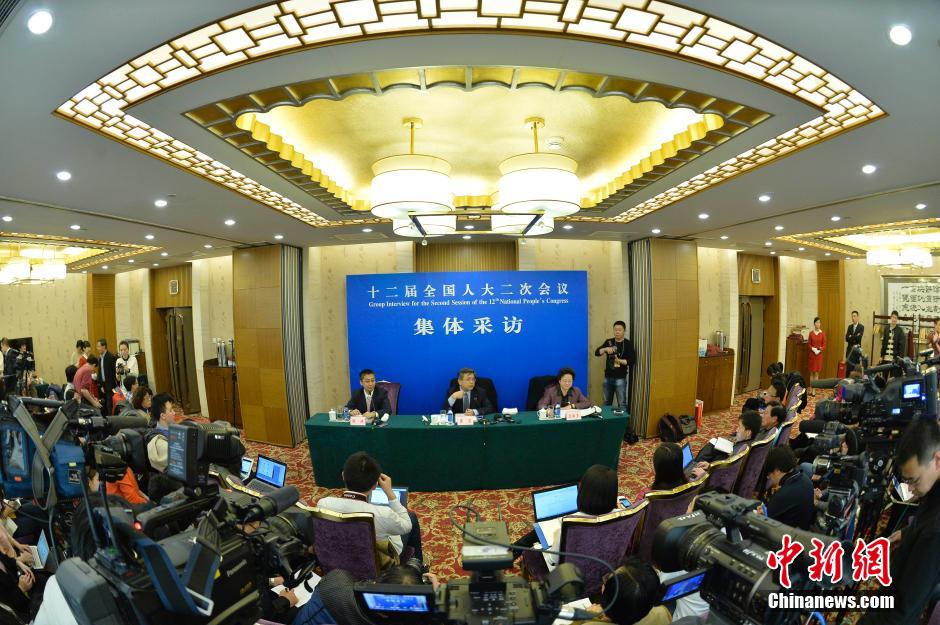3月11日,十二届全国人大二次会议新闻中心在北京梅地亚中心举行集体采访,邀请全国人大代表、南开大学校长龚克和全国人大代表、湖州职业技术学院副院长沈琪芳就“教育改革”的相关问题回答中外记者的提问。中新社发 骆云飞 摄
