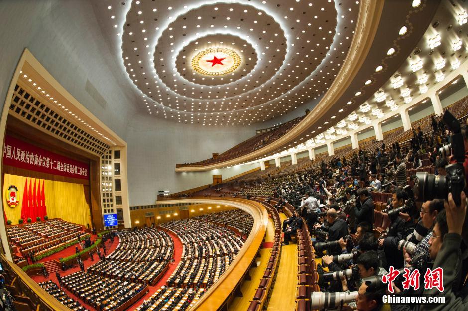 3月12日,全国政协十二届二次会议在北京人民大会堂举行闭幕会。党和国家领导人习近平、李克强、张德江、刘云山、王岐山、张高丽等出席。全国政协主席俞正声主持。中新社发 骆云飞 摄
